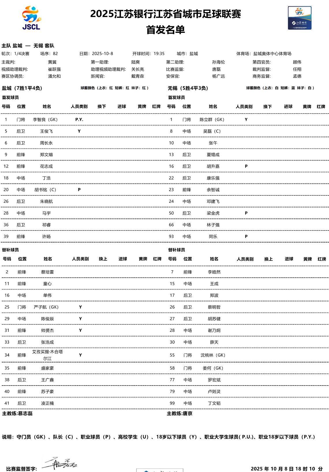 江苏超级足球联赛,江苏足协联赛,足球赛程,积分榜,江苏球队,足球直播,聚焦江苏超级足球联赛,提供2025年赛程、积分榜、参赛队伍资料、赛事直播及精华集锦,全民足球激情不断更新!在2025年江苏省城市足球联赛(苏超)8强赛的最后一场比赛中,盐城队迎战无锡队,慕志磊教练的回归让这场比赛本应成为盐城复仇的好机会。然而,结果却是盐城再次不敌无锡,遭遇无锡的双杀,最终未能晋级四强。本文将对比盐城在两场对阵无锡的阵容与人员部署,并探讨为何盐城球迷在比赛中出现提前离场的现象。