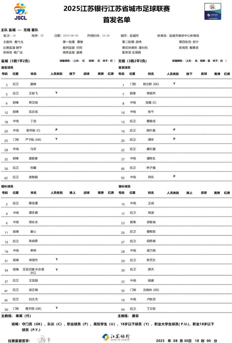在门将位置上,盐城将严子航换成了李智良,后者是职业球员,这在一定程度上提升了盐城队的实力。尽管如此,无锡队的阵容依然更加强大,不仅有胡升嘉、周宇、同乐等3名职业球员,李皓然、吴磊、张午和夏锡成等球员也都曾效力于无锡吴钩。与无锡队相比,盐城队在纸面实力上处于劣势,这使得他们输给无锡并不意外。