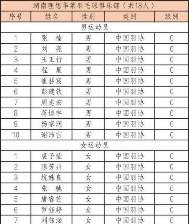 从网上曝光的运动员第一次注册名单来看,湖南队共有18名运动员,其中男子运动员10人,女子运动员8人。曾获伦敦奥运会混双冠军、里约奥运会男双冠军的羽毛球名将张楠,将代表湖南队参赛,近些年国内赛事涌现出来的刘亮、王正行、坑姝良、张弛等人也悉数在列。
