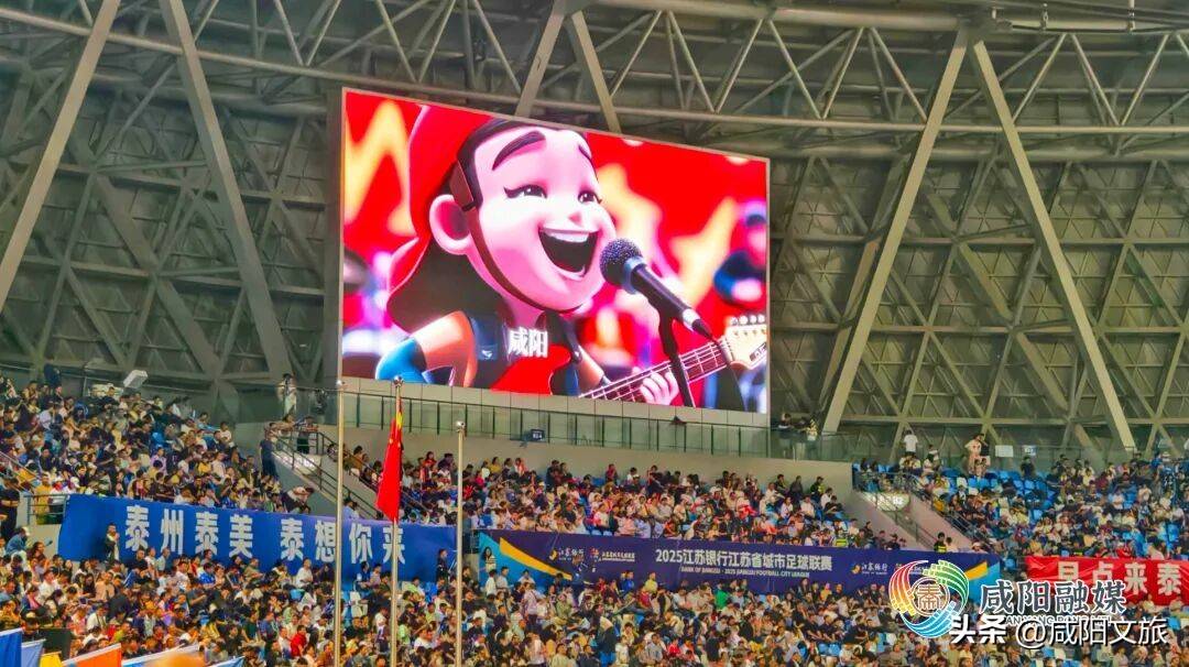 随着赛事的推进,咸阳以一种别具一格的方式为泰州加油助威。9月20日,泰州主场迎战南京队时,咸阳专门组织了一场气氛热烈的助场演出,演绎了充满激情的陕派摇滚《浪咸阳》。阵前的旗帜猎猎,气氛被“秦嘟嘟”人偶的亲切互动点燃,瞬间激发了全场的热情。与此同时,咸阳球迷助威团展示的标语如“相知无远近,泰咸一家亲”,“群咸毕至,泰州加油”和“山南水北,咸阳很美”,与泰州球迷的呐喊声交织成一片,成为赛场上最动人的画面。