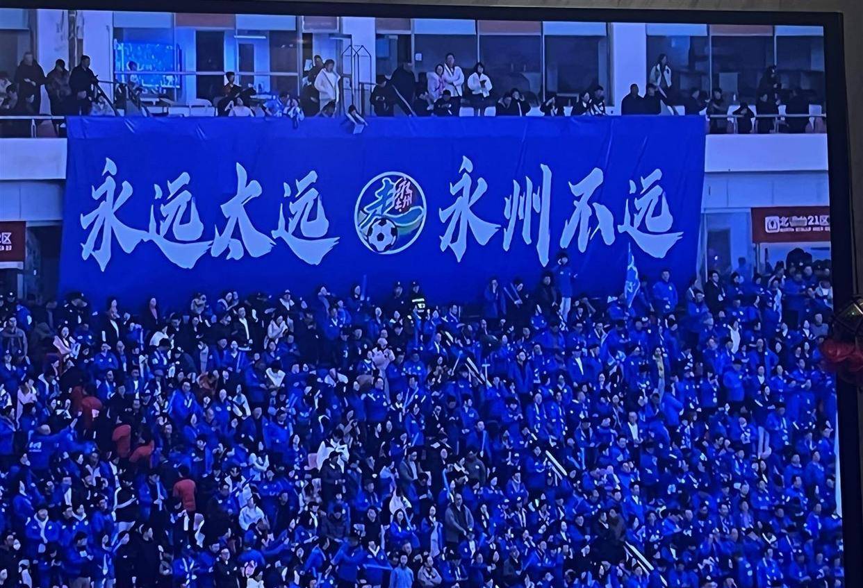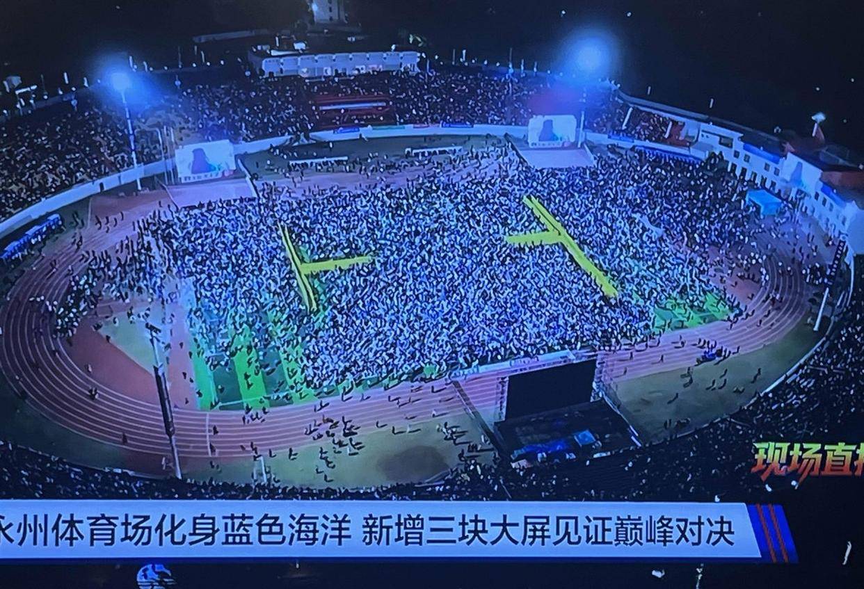 与此同时,在未能亲临长沙的球迷聚集地,另一种观赛热情也在燃烧。在永州,本地的体育场早早布置好了大型LED屏幕。比赛当晚,市民们从四面八方涌向体育场,很快便将看台坐满,后来的观众只能站在过道或场边空地。整个体育场几乎座无虚席,场景堪比重要文艺演出。在常德,组织者设立了多个商场户外广场分会场。大屏幕下摆满了塑料凳,周边餐饮店的生意也格外火爆。人们呼朋引伴,扶老携幼,围坐在一起,盯着屏幕上的每一次传球、每一次拼抢。当画面切换到长沙主场那人山人海的看台时,分会场也会响起一片惊叹与羡慕的呼声。