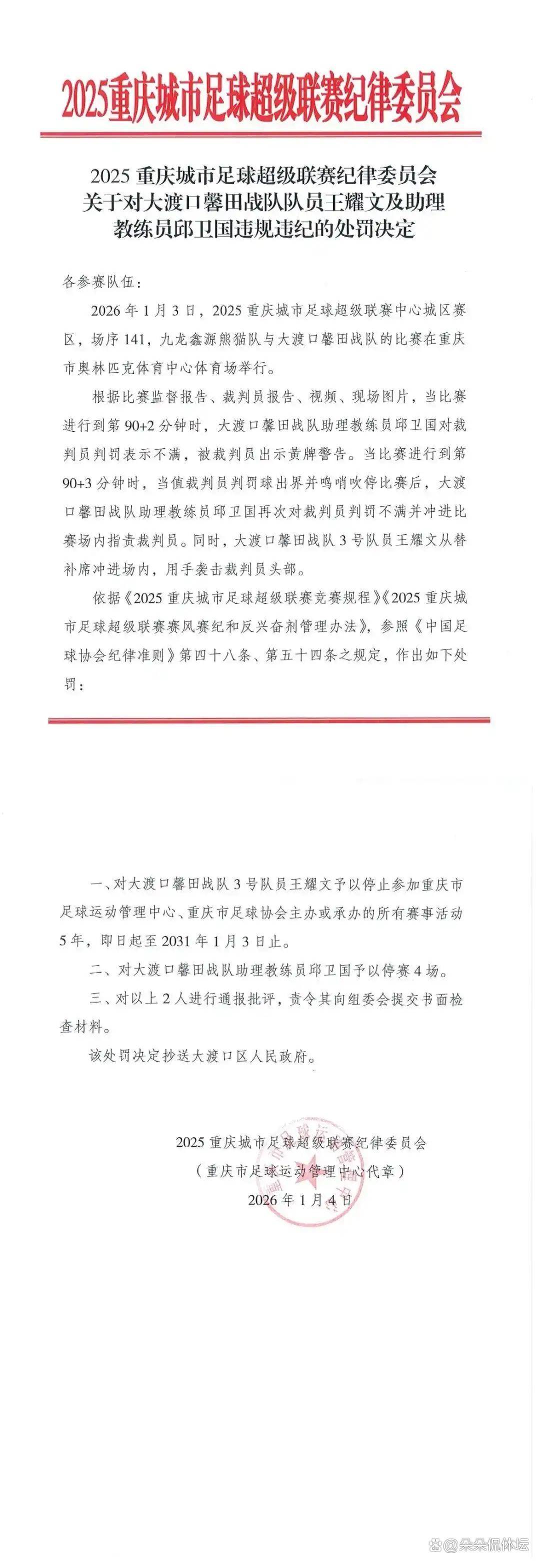 九龙坡足球场的看台一片混乱,矿泉水瓶如雨点般落下。2026年1月3日,渝超联赛的补时时刻,大渡口队一记绝平进球被判定无效。